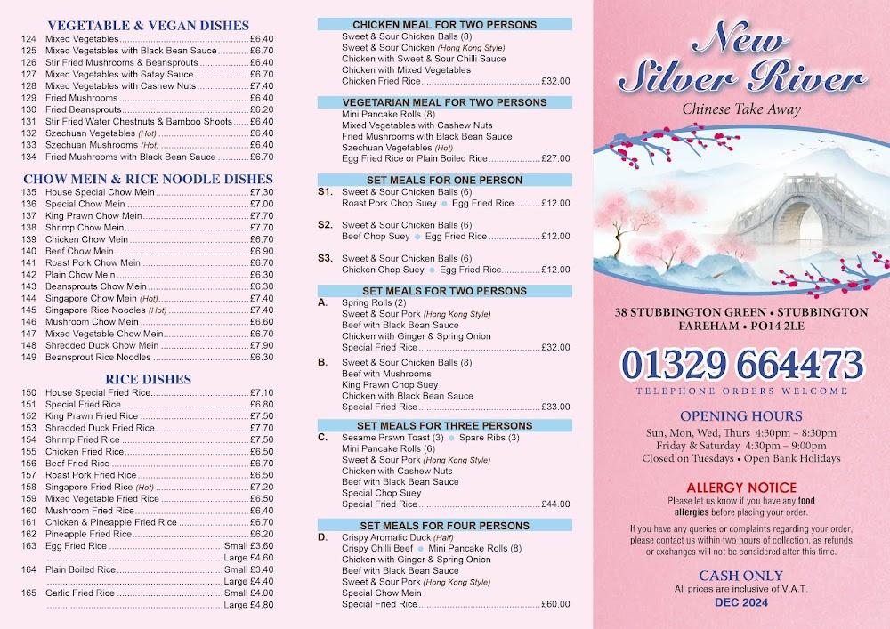 Nestled in the heart of Stubbington, New Silver River serves as a local haven for Chinese food lovers. The takeaway is ideally situated right off the bustling Stubbington Green, making it accessible for residents and visitors alike. Given that it's a cash-only establishment, it promotes a straightforward and no-frills dining experience, which appeals to many in the community. New Silver River operates daily, welcoming food enthusiasts from Monday to Sunday, ensuring everyone can indulge in their favorite Chinese dishes without the hassle of scheduling. The establishment features a wheelchair-accessible entrance and seating, making it accommodating for all patrons.